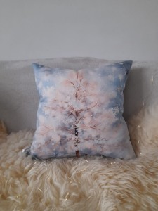 Poduszka z weluru tapicerskiego wypełniona kulką silikonową. Tył szary.