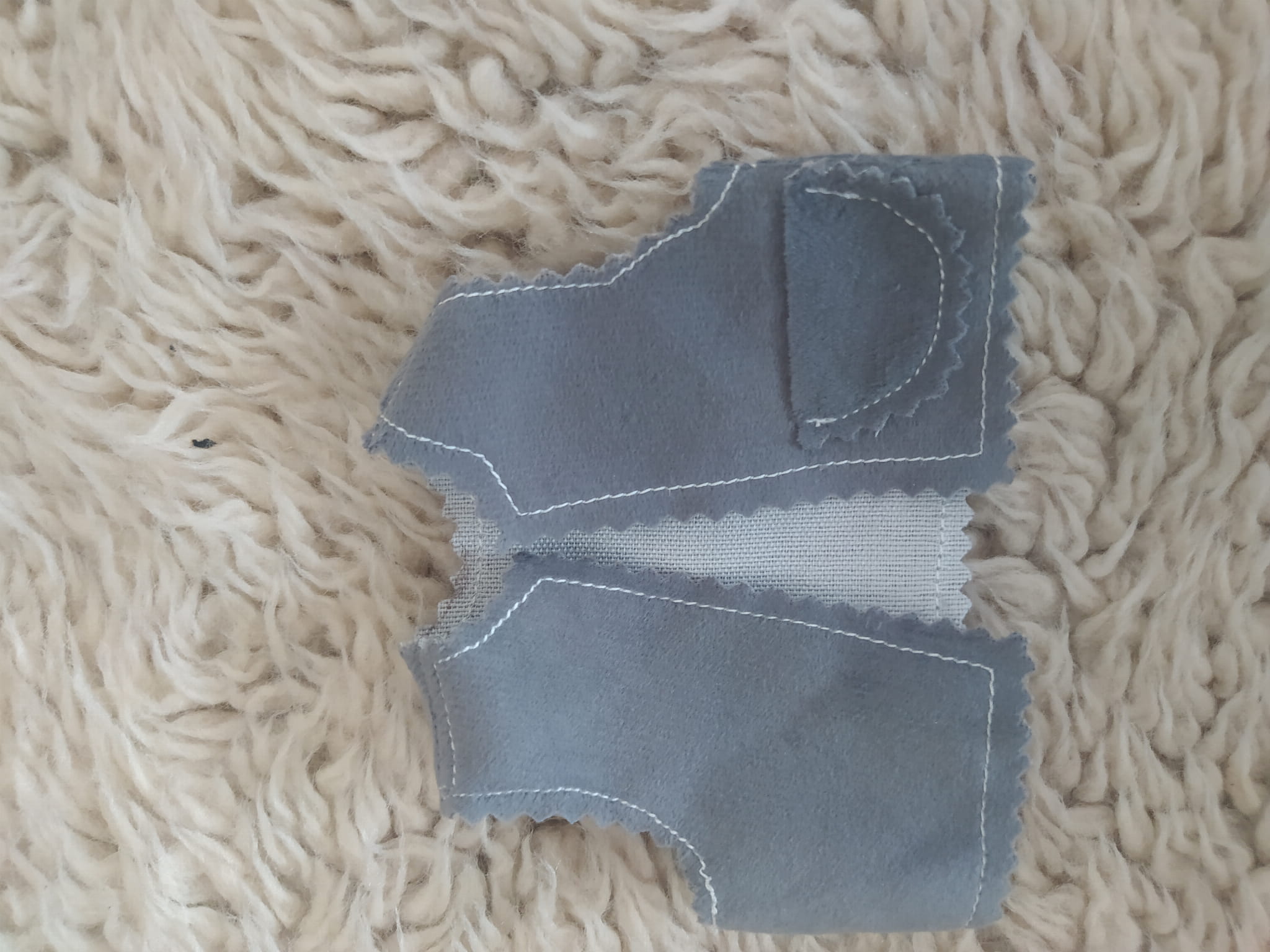 Szara kamizelka z cienkiego zamszu. Ma kieszonkę na tulikowe skarby.