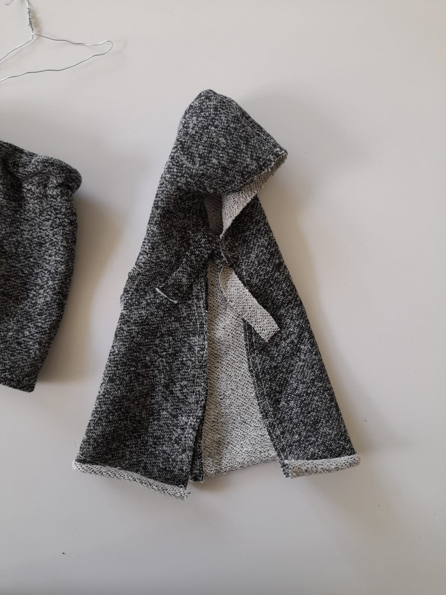 Szara pelerynka z kapturem