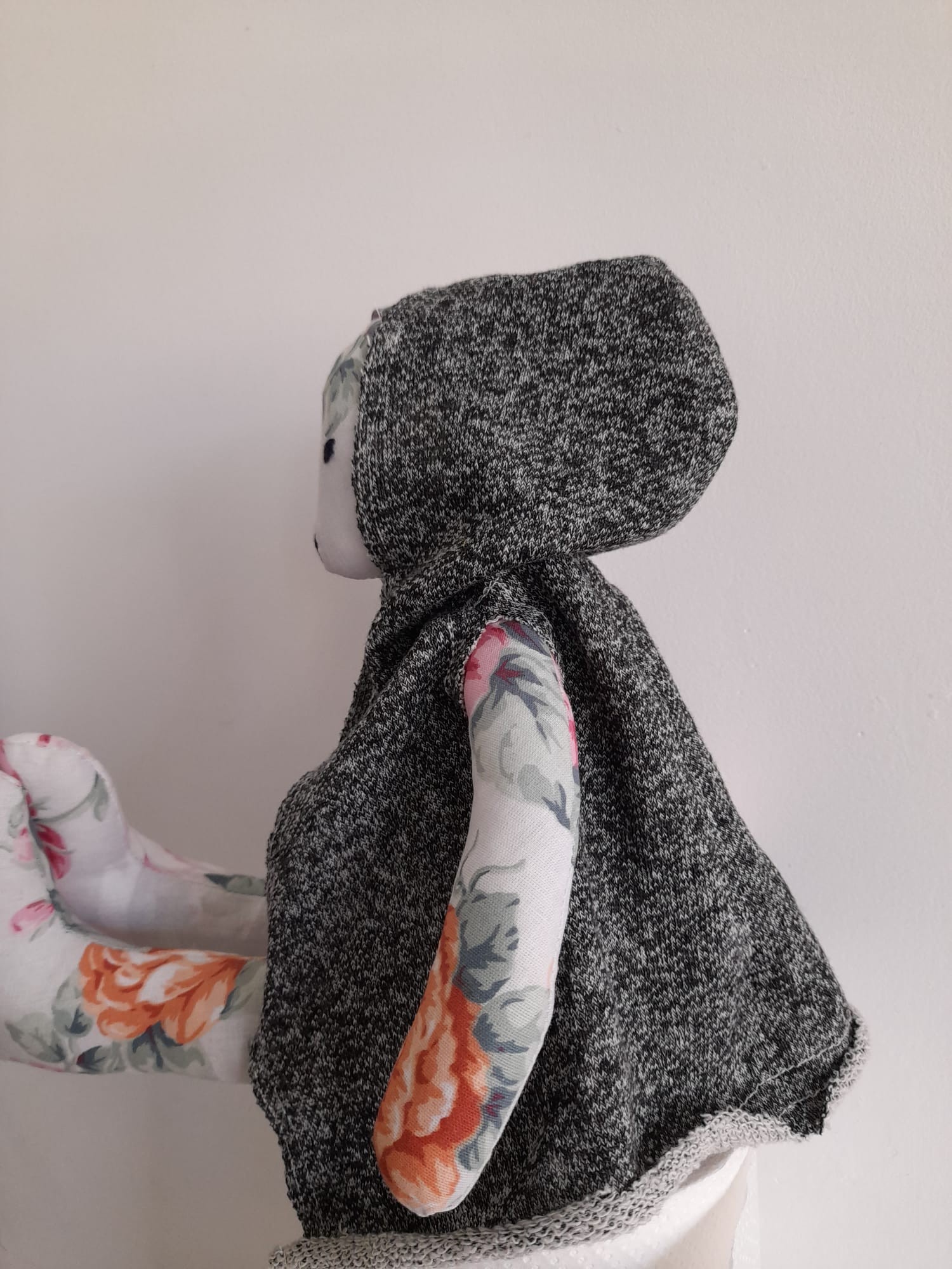 Zakładana pelerynka dla Tulika i Tuliczki uszyta z bawełnianej tkaniny dresowej.