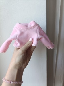 Różowa bluzka z długim rękawem. Uszyta z lekko rozciągliwego miękkiego materiału tak, by łatwo było małym rączkom ubrać przytulankę.